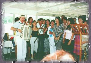 Pour le culte de 11h00 à bord du bateau, le message de notre pasteur Daniel NUSSBAUMER était de circonstance. En trois volets, il nous a lu et commenté les efforts de Noé pour sauver sa famille et les animaux; la fâcheuse aventure de Jonas jeté à la mer mais sauvé par un grand poisson ; le voyage de Paul pour l'Italie qui se termine en naufrage mais sans perte de vies. Ces thèmes ont été repris à tour de rôle par les responsables des communautés lusophone et hispanophone. Le groupe de jeunes a assuré la musique et l'accompagnement des chants.