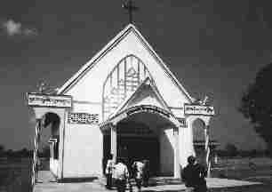 Accompagnés par un petit orchestre d'instruments traditionnels, nous célébrons le culte dans la simple mais fonctionnelle Église en bois construite par la communauté avec de l'aide extérieure.