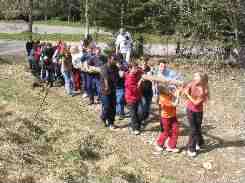 Trop court, le camp de « caté » ! Tout le monde vous le dira, du moins tous les jeunes qui y ont participé.Les 19, 20 et 21 avril 2004, 26 jeunes se sont réunis autour d'une petite équipe à Landersen pour ce mini-camp de « caté ». L'accueil chaleureux et la fonctionnalité du centre ont permis à tous d'en profiter pleinement, tant spirituellement que moralement et physiquement (avec des concours de bras de fer par exemple). Le « staff » (l'équipe), composé notamment d'Isabelle BALZLI, Antoine ILTIS et Mathieu WALDMEYER, a permis aux jeunes sous l'impulsion et le formidable travail préparé par Bernard LEHMANN de progresser dans la foi à travers l'étude des aveugles dans les Évangiles.On a (re)trouvé toutes les composantes inévitables d'un bon camp de « caté » : des « ballons-camp-caté » (variante du célèbre « ballon prisonnier »), des jeux (lors de la veillée par exemple), du sport (footing, hockey en salle, etc.) mais aussi des bricolages, des montages de diapositives, plein de mini-groupes (sur le thème des aveugles), de bons repas ainsi que des moments très forts autour de la guitare pour louer Dieu, mais aussi autour de la parole de Dieu jusque tard le soir. Et bien sûr, comment ne pas oublier les traditionnelles balades de nuits ?Ces moments, à la fois courts et intenses, ont permis aussi au « staff » de faire le point sur sa propre vie, de prendre un temps particulier avec Dieu et les jeunes. Nous avons remarqué une nette différence entre le premier moment de chants et de prières et le dernier : une paix immense était présente, une profondeur, un « sérieux » et une « concentration » spirituels intenses, des jeunes reconnaissants mais aussi touchés par les paroles de Bernard, bref une communion fraternelle toute particulière, un bonheur d'appartenir à la famille de Dieu.Mais laissons quelques jeunes s'exprimer et une photo illustrer l'ensemble. La suite au prochain numéro (avec plein d'autres témoignages de jeunes et d'autres photos).A bientôt,Jean-Philippe BRINKERT