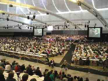 Chaque matin de la Conférence Générale commençait par un culte où l'un des évêques prêchait. La méditation au début de ce numéro du « Messager Chrétien » en parle. Des chorales de styles et de langues très différents chantaient. Ces moments de recueillement faisaient du bien au début de journées chargées. Je m'en suis toujours réjoui. Sur nos sièges de délégués, nous avons trouvé le troisième volume de «Global Praise» qui contient des chants chrétiens du monde entier. J'y ai découvert par exemple une traduction anglaise d'un chant berbère d'Algérie (merci à Hamid GUERNINE !) et des chants de presque tous les pays européens. Un CD regroupe quelques-uns des chants du troisième volume. Le témoignage de chrétiens des quatre coins du monde nous a encouragés à poursuivre la mission de l'Église : faire des disciples du Christ.