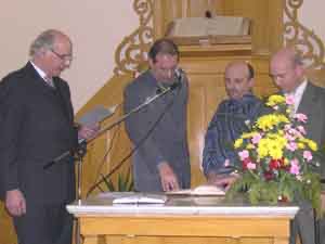 Ce samedi 26 février 2005 a eu lieu le synode de l'EMF au cours duquel 3 pasteurs ; Grégoire Chahinian (Montélimar), Pascal Gaudin (Anduze), Pascal Maurin (St Jean de Valériscle) ont reçu la consécration pastorale.