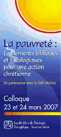 Colloque 23-24 mars 2007 "La pauvreté" à la Faculté Libre de Théologie Evangélique de Vaux - Surfer net - 40 jours de SMS quotidien