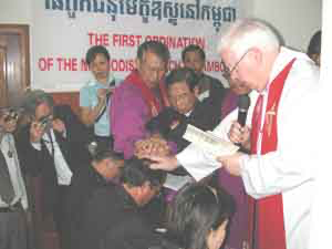 La première ordination de pasteures et pasteurs cambodgiens a eu lieu en janvier 2003.Connexio soutient la formation de dix étudiants.