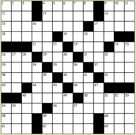 1. Toute pièce de bois, poutre, barre, traverse, etc. - 2. Lame de fer, d’acier, striée de tailles entrecroisées formant comme des rangées de dents, et qui sert à user les métaux par le frottement - 3. Roi de la VIIIe dynastie de l’Egypte antique - 4. Sucré avec du miel - 5. Enzyme - 6. Agence spatiale américaine - 7. Lieu isolé offrant de la végétation dans un désert de sable - 8. Symbole de l’actinium - 9. Très froid - 10. Père de Betsaleel, l'artiste (Ex 31.2) - 11. Descendant de Bouz, fondateur d'un clan, et ancêtre d'Elihou (Jb 32.2) - 16. 3e personne du singulier du présent de l’indicatif du verbe réer - 17. Pronom personnel, 3e personne du féminin pluriel - 22. Aurochs; bison d'Europe - 24. État du Middle West des États-Unis bordé par la Pennsylvanie à l'est, le Michigan et le lac Érié au nord, l'Indiana à l'ouest, le Kentucky au sud et la Virginie-Occidentale au sud-est - 25. cf. Vertical 6 - 30. Germandrée à fleurs jaunes, dite aussi petit if, qui exhale une odeur aromatique résineuse - 32. Imbécile, idiot - 34. Filet à attraper les alouettes - 36. Prénom de l’actrice Longoria - 39. Résidu de la mouture du blé ou d'autres céréales, provenant du péricarpe des grains - 45. Qui a rapport ou appartient au nez - 47. Plante bulbeuse (liliacées) dont le bulbe est composé de caïeux à odeur forte et saveur piquante utilisés comme condiment - 48. Style vocal propre au jazz, qui consiste à chanter sur des syllabes arbitraires (et peu nombreuses) ou à déformer les syllabes d'un texte chanté. - 49. Dans la cuisine créole, boulette faite d'une pâte de farine et de poisson émietté ou de légumes écrasés, assaisonnés d'aromates, frite dans l'huile bouillante - 51. Onomatopée imitant un bruit fort et sec - 52. Vide ou incomplètement chargé - 53. Objet fixe et visible servant de point de repère en mer ou sur la côte - 54. Préposition exprimant une relation de lieu ou de temps - 55. États-Unis - 59. Abréviation de la Belgique.