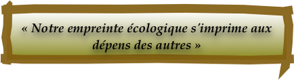 Il y a quelque temps, j'ai découvert une empreinte encore différente: mon empreinte écologique. On a calculé quelle surface de terrain était nécessaire à un être humain pour que la Terre puisse reproduire les bons produits qu'il consomme ou résorber les matières nocives qu'il produit. On peut aussi calculer cette empreinte écologique pour toute une vie. Ainsi, par exemple, si tous les habitants de la Terre voulaient vivre comme nous ici en Suisse, il faudrait presque trois globes terrestres… Notre empreinte écologique s'imprime aux dépens des autres, même si nous ne l'acceptons (pas encore) et nous irritons tout au plus au sujet de ces Africains qui se bousculent pour venir en Europe.