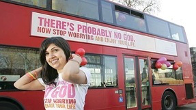 Une campagne athée sévit depuis quelques semaines à Londres initiée par Ariane Sherine, une jeune journaliste et scénariste de 28 ans, avec des slogans placardés sur 800 autobus et dans le métro de Londres. Elle est financée par des dons qui ont dépassé 140 000 livres (150 000 €). Les affiches placardées sur les bus portent l’inscription suivante : « Dieu n’existe probablement pas. Arrête de t’inquiéter et profite de la vie ».