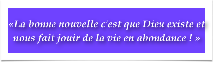 À ceux qui prétendent qu’une vie avec Dieu est synonyme de frustration et de privation, Jésus réplique : Je suis venu donner la vie et la vie en abondance (Jn 10). La vie avec Dieu est jouissance et réjouissance ou elle n’est pas.