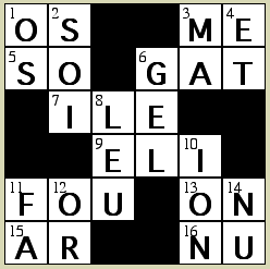 1. Appelée aussi Apocalypse - II. Des saisons - Mère de Jésus - III. Notre Seigneur en a raconté près de quarante - IV. Pousse dans les champs - Termine Moïse - Précède la matière du professeur - V. Claire - Mélangé, ville d’une noce - VI. Quelques lettres d’un fruit de l’Esprit - A l’envers, tout ce qui vient de Dieu doit l’être - VII. Carte importante - Surtout ne le trichez pas ! - VIII. Guéri quand même de sa lèpre - Petit à l’Opéra - IX. Il ne faut absolument pas le faire souvent - X. Absolument rien, mais mélangé - La nôtre est blanche.