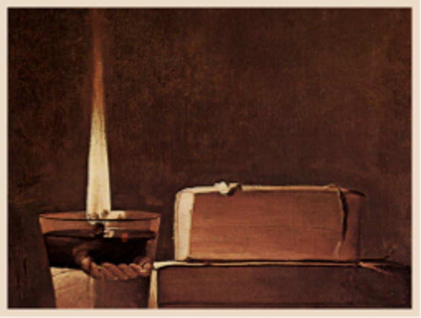 Légende : Détail : bougie et livres de Georges de la Tour © wikimedia