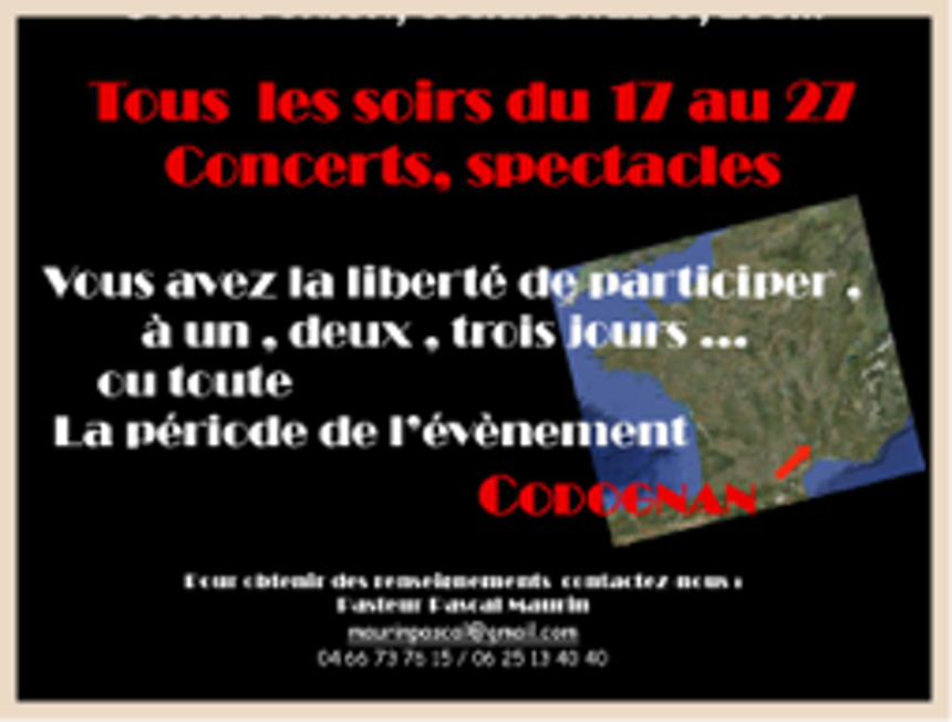 La QUATRIÈME ÉDITION DU FESTIVAL DE MUSIQUE CHRÉTIEN se déroulera du 17 au 27 août 2012 à Codognan (dans le Gard - Sud de la France).