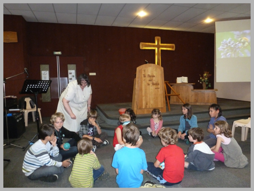 Notre oratrice du jour : Marie-Christine Urbestondou, capitaine et formatrice de « Cliquelavie » (site sur internet) nous a présenté l’œuvre de l’A.E.E (Association, Evangile, Enfant). En racontant l’histoire illustrée de Noé, elle a captivé petits et grands, invitant régulièrement les enfants à s’engager, à donner leur cœur au Seigneur, à témoigner… Pour les adultes, cela a aussi permis de refaire un point sur notre vie de chrétien mais surtout de disciple. En effet, Jésus nous appelle à être des disciples, pour partager la Bonne Nouvelle à d’autres, qui la partageront à d’autres à leur tour (Mt 28.19). Un jeu de l’oie biblique a clôturé cette matinée.