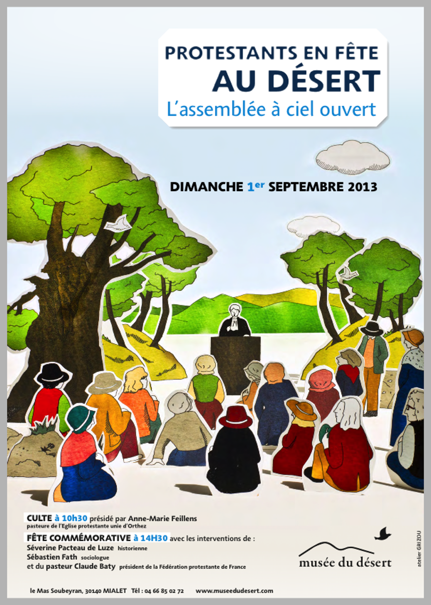 Suivant le fil de cette mémoire, les assemblées du Musée du Désert, chaque 1erdimanche de septembre, sont le rassemblement joyeux, à ciel ouvert, d’une multitude venue de tous les horizons à l’appel de la Parole source.