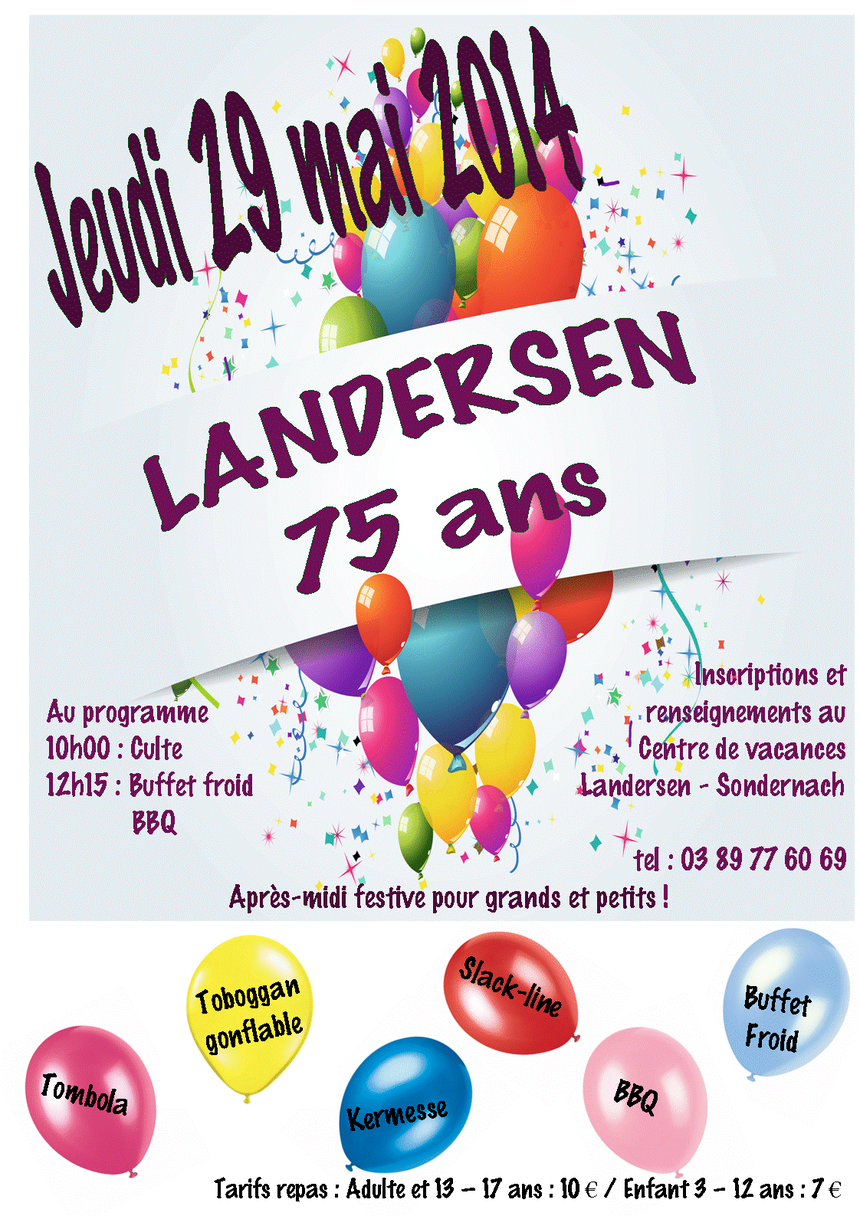 Le Jeudi de l’Ascension, 29 mai 2014, les églises de l’UEEMF fêteront le 75e anniversaire de la fondation du Centre de Vacances Landersen.