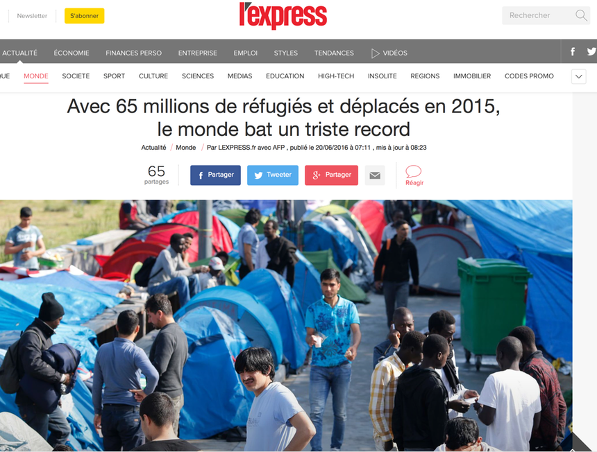 La page de l’Express consacrée aux réfugiés lors de la Journée mondiale des Réfugiés